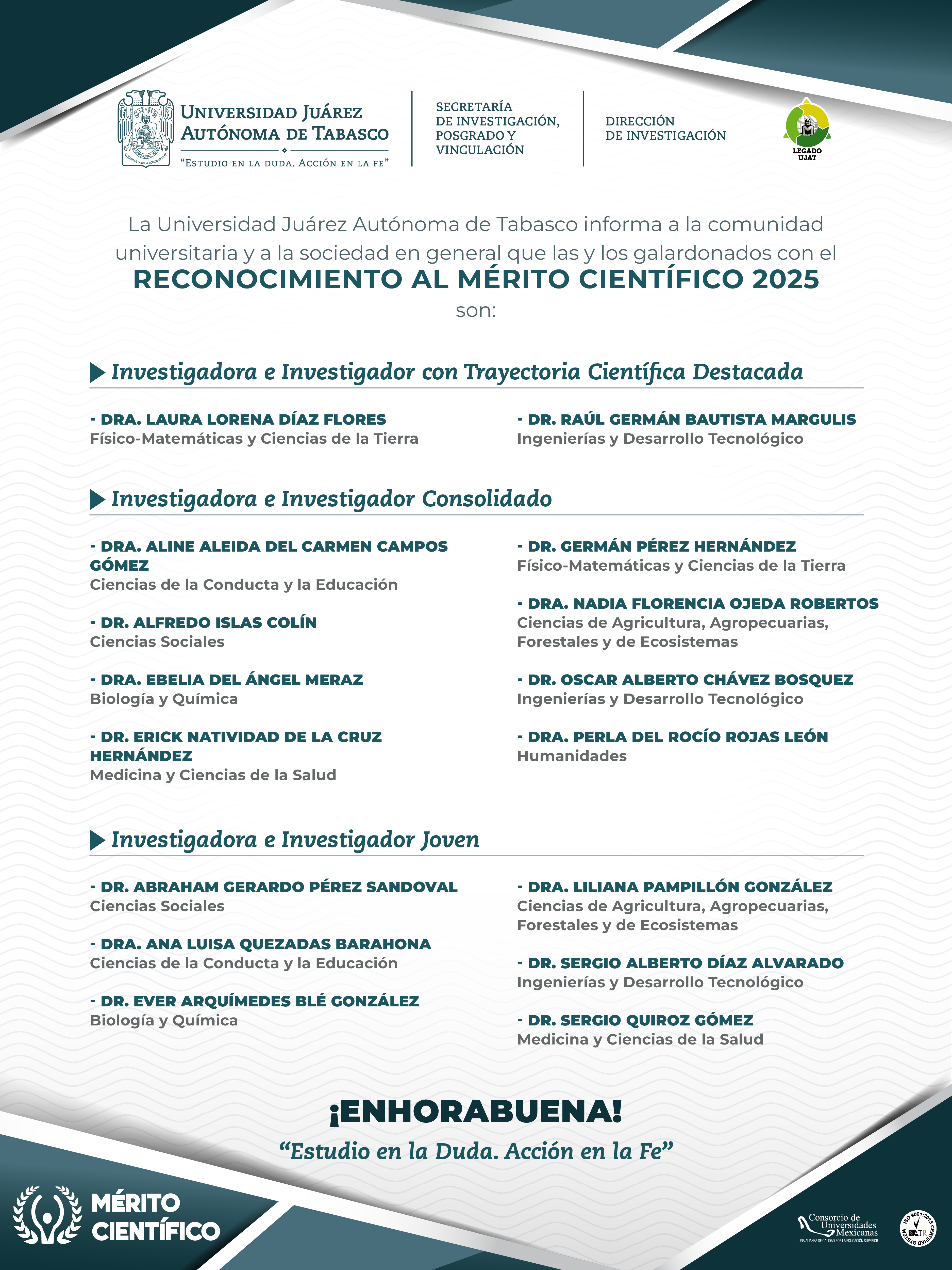 GALARDONADOS con el Reconocimiento al Mérito Científico 2023 son: