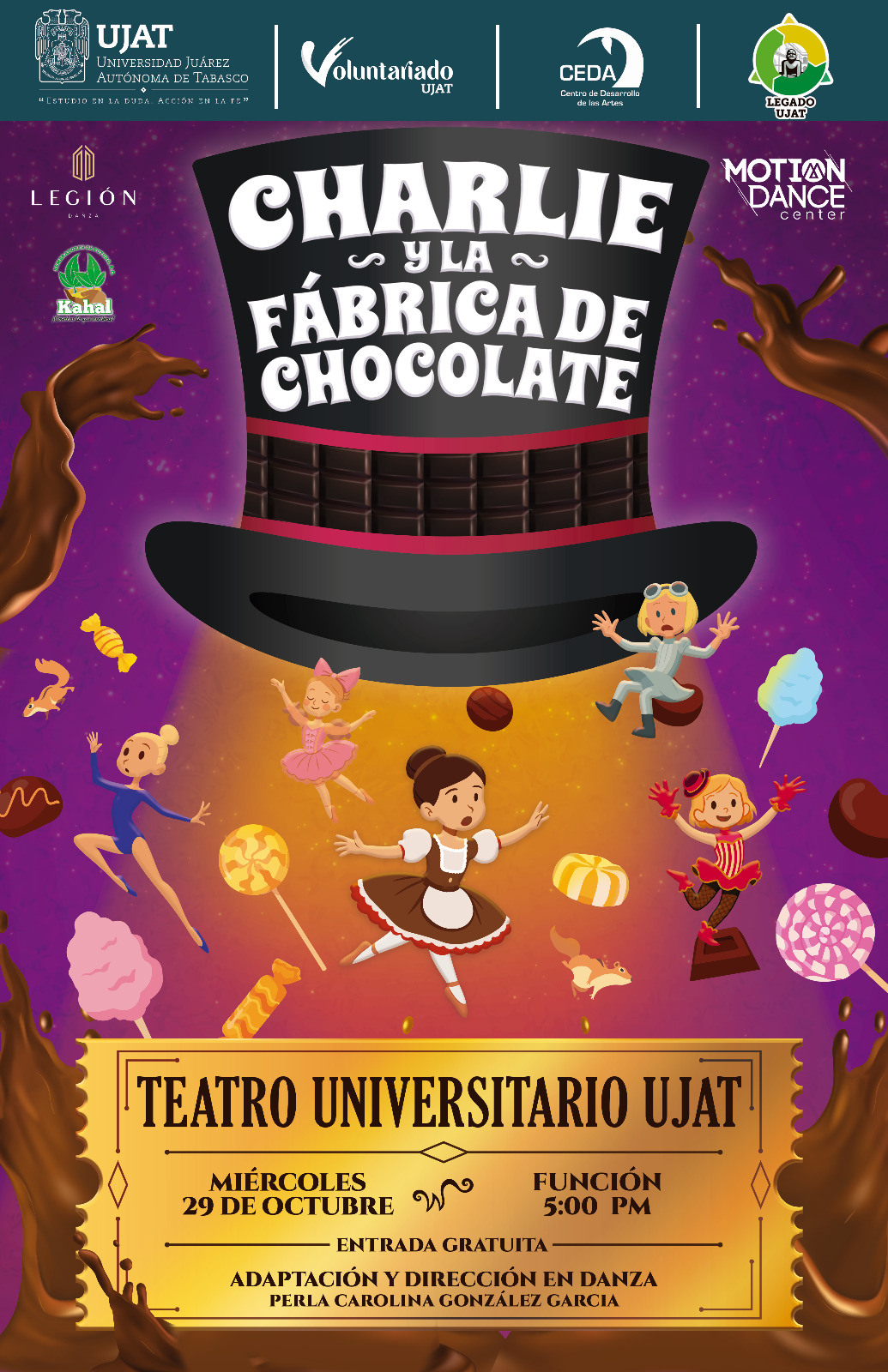 ¡Charlie y la Fábrica de Chocolate llega al Teatro de la UJAT! Disfruta de la función totalmente gratis.