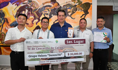 Rector de la UJAT premia emprendimientos del Reto Universitario: Té de Cascarilla de Cacao