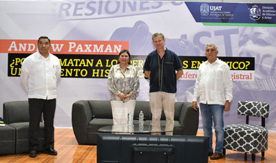 En presencia de la directora de la División Académica de Educación y Artes, Thelma Leticia Ruíz Becerra y del director General de Comunicación Social, Juan José Padilla Herrera, el periodista de origen inglés subrayó que, al tratarse de un tema delicado, el objetivo de sus estudios es precisamente aportar los datos que indican el porqué del fallecimiento de un periodista, debido a que no todas las muertes se tratan de asesinato.