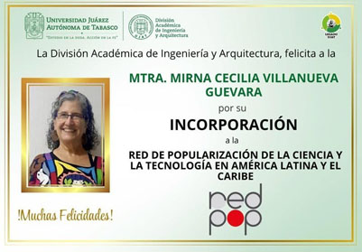 La profesora investigadora de la Universidad Juárez Autónoma de Tabasco (UJAT), Mirna Cecilia Villanueva Guevara, se integró a la Red de Popularización de la Ciencia y la Tecnología en América Latina y el Caribe (RedPOP), que forma parte del Programa de Ciencia, Tecnología y Sociedad de la UNESCO.
