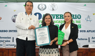 Al clausurar las actividades del Congreso Internacional de las Ciencias Básicas y sus Aplicaciones, en el marco del 40 Aniversario de la División Académica de Ciencias Básicas (DACB), el rector de la UJAT, felicitó a la doctora Myriam Mondragón Ceballos, por recibir este reconocimiento que honra a quienes dedican su vida a la enseñanza y la investigación.