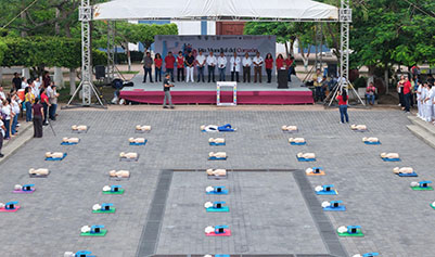 En este marco, organizaron un RCP Masivo bajo el lema “Muévete por tu corazón, no pierdas ningún latido”, actividad realizada en el Parque Central de Comalcalco, con más de 450 asistentes, entre estudiantes, docentes, autoridades y público en general.
