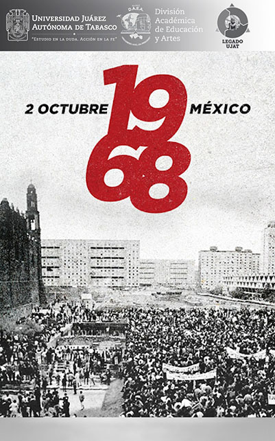 La Universidad Juárez Autónoma de Tabasco (UJAT), a través de la División Académica de Educación y Artes (DAEA), conmemoró este jueves 2 de octubre los 57 años del movimiento estudiantil de 1968 con un programa que se desarrolló en distintos espacios del campus, donde estudiantes y profesores presentaron actividades artísticas, académicas y de reflexión sobre aquel suceso histórico que marcó al país.