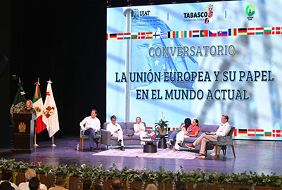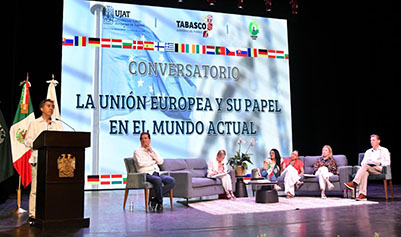 Al compartir un espacio de reflexión y análisis en un contexto internacional, embajadores de Europa, convocaron a estudiantes y profesores de la Universidad Juárez Autónoma de Tabasco (UJAT), para fortalecer los lazos de cooperación académica, cultural y política, como parte del Conversatorio “La Unión Europea y su papel en el mundo actual”.