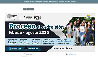 La Universidad Juárez Autónoma de Tabasco (UJAT), publicó la convocatoria para el Proceso de Admisión correspondiente al periodo escolar febrero–agosto 2026, la cual se encuentra disponible en su portal institucional www.ujat.mx/aspirantes.