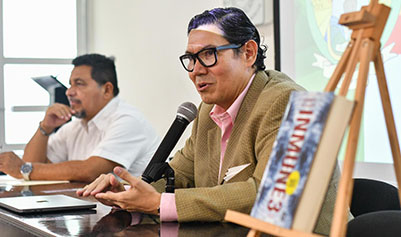 El escritor Xavier H. Castañeda presentó su más reciente obra titulada “INMUNE3”, un thriller de acción y suspenso que combina ciencia, misterio y conspiración internacional, como parte de las actividades por el 35 Aniversario de la Licenciatura en Idiomas que se imparte en la División Académica de Educación y Artes (DAEA) de la Universidad Juárez Autónoma de Tabasco (UJAT).