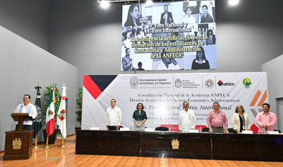 Así lo destacó el rector de la UJAT, Guillermo Narváez Osorio, al inaugurar el 19º Foro Presencial Nacional y 14º Internacional de la Asociación Nacional de Facultades y Escuelas de Contaduría y Administración (ANFECA), bajo el tema “La Inteligencia Artificial en la formación de los estudiantes de Contabilidad y Administración de la ANFECA”.