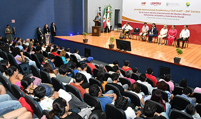 Ante la discapacidad visual, la Universidad Juárez Autónoma de Tabasco (UJAT) reafirma su compromiso con la inclusión, la empatía y la igualdad de oportunidades, destacó el rector Guillermo Narváez Osorio, en el arranque de las Jornadas Internacionales Académicas y Civiles: Autonomía, inclusión y conciencia social, que se celebran en coordinación Sistema Municipal DIF Centro, en el marco del Día Internacional del Bastón Blanco.
