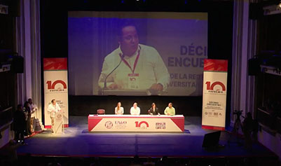 Para abordar los desafíos que presentan las radios universitarias ante las plataformas digitales que ganan terreno en los usuarios, así como analizar las nuevas legislaciones en materia de radiodifusión y fortalecer el trabajo colaborativo interinstitucional, la Universidad Juárez Autónoma de Tabasco (UJAT), a través de Radio UJAT Voz Universitaria, participa en el Décimo Encuentro de la Red de Radios Universitarias de México (RRUM).