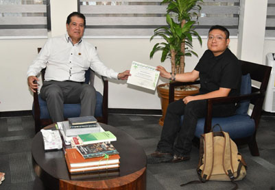 El rector de la Universidad Juárez Autónoma de Tabasco (UJAT), Guillermo Narváez Osorio, recibió la visita del egresado de la División Académica de Ciencias y Tecnologías de la Información (DACYTI), Jesús Alberto Díaz Domínguez, quien obtuvo el segundo lugar en el Concurso Nacional de Tesis de Licenciatura y Posgrado, organizado por el Colegio de Profesionistas Especialistas en Investigación (COPEIN).