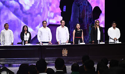En representación del rector de la Universidad Juárez Autónoma de Tabasco (UJAT), Guillermo Narváez Osorio, el secretario de Servicios Académicos, Luis Manuel Hernández Govea, alentó a los ochenta nuevos profesionales de los programas educativos de Enfermería, Genómica, Petroquímica y Nanotecnología, para que respondan a las necesidades y desafíos actuales del país, con un sentido social.