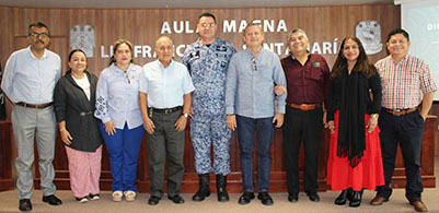 Previo a la ponencia que se desarrolló en el Aula Magna “Lic. Francisco J. Santamaría”, el director de la DACSyH, Ulises Chávez Vélez, dio la bienvenida al conferencista y destacó la importancia de acercar a los jóvenes universitarios a temas que contribuyen a su formación integral y a la comprensión del papel que desempeñan las Fuerzas Armadas en la protección de la soberanía nacional.