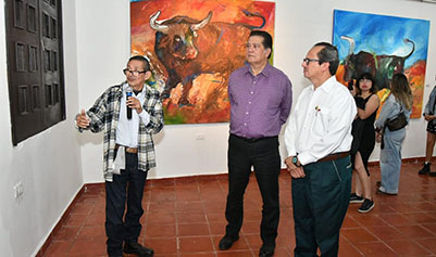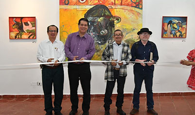 En este marco, el rector de la UJAT, Guillermo Narváez Osorio, acompañado por la subsecretaria de Cultura del Estado, Karla Garrido, eldirector de Difusión Cultural, Miguel Ángel Ruiz Magdonel, autoridades universitarias y el homenajeado, realizaron el corte del listón de la muestra plástica que se expone al público en la Galería del Instituto Juárez.