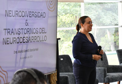 En este marco, se dio paso a la conferencista magistral “Neurodiversidad y trastornos del neurodesarrollo”, que impartió María Goretti García Hoil, quien es licenciada en Educación Especial, con especialidad en Problemas de Aprendizaje, maestría en Audición y Lenguaje y doctorado en Educación.