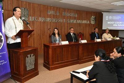 Al participar en un ejercicio académico que fortalece la formación jurídica y la simulación de litigios con estándares internacionales, se amplían los conocimientos de los estudiantes de la Universidad Juárez Autónoma de Tabasco (UJAT), aseguró el rector Guillermo Narváez Osorio, al clausurar la segunda edición del “MootCourt de Derecho Internacional”.