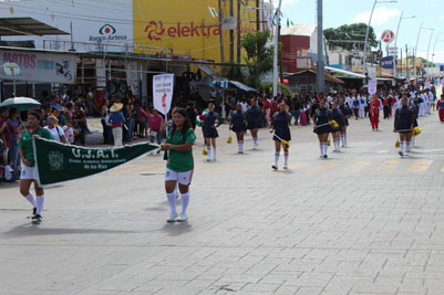 Estudiantes, docentes y administrativos de la División Académica Multidisciplinaria de los Ríos (DAMR), participaron en el desfile cívico-deportivo que se realizó en las calles del municipio de Tenosique, como parte de la conmemoración por el 115 aniversario de la Revolución Mexicana.