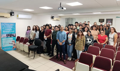 Durante la charla, los integrantes del Departamento de Divulgación de la Ciencia y la Tecnología de la UJAT, David Fernando Mirabal León y Gabriel Morales López, compartieron los métodos utilizados para desarrollar la museografía del recinto universitario, así como las características que pueden encontrarse en sus cinco salas interactivas.