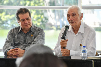 El entramado del diálogo “Tiempo, vida y poesía” fue abordado por dos exponentes de la literatura universal, Luis García Montero y Waldo Leyva, quienes acompañados por el rector de la Universidad Juárez Autónoma de Tabasco (UJAT), Guillermo Narváez Osorio, participaron en el Encuentro Iberoamericano de Trova y Poesía.
