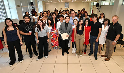 Como parte de la inauguración, los estudiantes compartieron su experiencia en la creación de las obras. Luis Omar Uribe Cavazos, integrante del grupo y participante de la primera puesta en escena, explicó que “Navidad Jurídica” aborda de manera dinámica y familiar temas como las herencias, los conflictos por terrenos y la toma de decisiones en torno a la sucesión patrimonial.