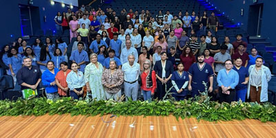 Posteriormente, María Trinidad Fuentes Álvarez y Antonio Becerra Hernández dirigieron una dinámica participativa que dividió al auditorio en cuadrantes, apoyados por estudiantes de Psicología. Los grupos discutieron preguntas detonadoras relacionadas con el cuidado psicoemocional, cuyos resultados fueron luego integrados y analizados por los organizadores.