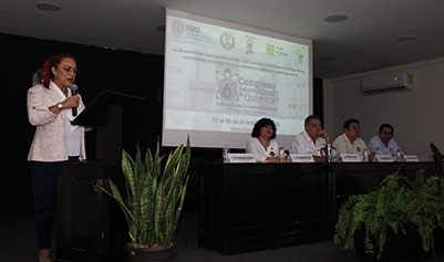 Ante profesores y alumnos que se dieron cita en el auditorio “Museo de Ciencias” de la DACB, la directora de este campus, Hermicenda Pérez Vidal, informó que las actividades preparadas fueron enmarcadas en los ejes: “Educación Química”, “Sustentabilidad”, “Química analítica”, “Química computacional”, “Química orgánica e inorgánica”, “Química de alimentos” y “Nanotecnología”.