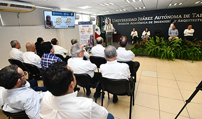 El rector de la Universidad Juárez Autónoma de Tabasco (UJAT), Guillermo Narváez Osorio, inauguró la Sala de Directores de la División Académica de Ingeniería y Arquitectura (DAIA), como parte de las actividades que conmemoran el 65 aniversario de la antigua Escuela de Ingeniería, espacio donde aseguró que dirigir a una comunidad, más allá de ser una obligación, es la oportunidad para construir un legado a través de acciones de calidad.