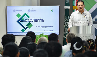 Al presentar los contenidos del Plan de Desarrollo Divisional, el director de la DAMC, José Alfredo Díaz Gandarilla, informó que el documento se integra a partir de 264 propuestas generadas en el foro de consulta, reflejo de una comunidad participativa que aporta a la mejora continua.
