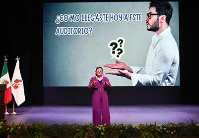 Posterior a la ceremonia inaugural, se dio paso a la conferencia magistral “Conociendo y aceptando lo extraordinario que nos engrandece”, impartida por Sandra Iveth de la Rosa Gutiérrez, quien invitó a las y los estudiantes a reconocer sus capacidades, asumir los retos de la vida universitaria, construir una experiencia formativa integral, además de exponer la importancia de la neurodiversidad en el aprendizaje.