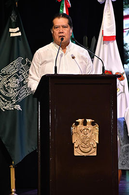 Ante la comunidad universitaria presente, expuso que, en materia académica, se atendió a 28 mil 303 estudiantes, registrando un crecimiento del 1.32 por ciento, mientras que el 57 por ciento de su oferta evaluable cuenta con acreditaciones de excelencia, y el 88.5 por ciento de los cuerpos académicos se ubican en niveles de En Consolidación y Consolidado.