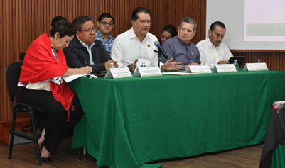 Durante su intervención y acompañado por la comisión institucional, el rector Guillermo Narváez Osorio expuso de manera detallada el contexto financiero que enfrenta la institución, marcado por una disminución presupuestal del 1.7 por ciento otorgada por la Federación para el ejercicio 2026, incremento que, precisó, no alcanza siquiera los 47 millones de pesos y resulta insuficiente frente a una nómina que representa alrededor del 86 por ciento del presupuesto universitario.