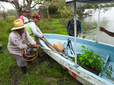 Al respecto, las técnicas del Laboratorio de Manglares Interiores de la División Académica de Ciencias Biológicas (DACBiol), Judith Paola Cardeño Resendis y Diana Pilar Trejo, responsables de esta fase del proyecto, dieron a conocer que se contempla la plantación de nueve mil individuos de especies nativas como icaco, bix, tinto, maculís y güiro, de alta relevancia ecológica en zonas asociadas a ríos y cuerpos de agua.