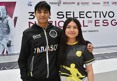 En busca de mejorar su posición en el ranking nacional y prepararse para los campeonatos panamericanos y mundiales, los estudiantes de la Universidad Juárez Autónoma de Tabasco (UJAT), José Ángel González Mandujano y Brisa Fernanda Méndez Jiménez, recibieron el respaldo del rector Guillermo Narváez Osorio, en el marco de la competencia del Tercer Selectivo Nacional de Esgrima.
