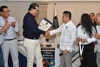 Lo anterior en el marco de la Sesión Ordinaria de esta agrupación de abogados, celebrada en el Hotel Viva Villahermosa, donde el presidente de Cultura Jurídica, Jesús Jiménez Jiménez, reconoció también las aportaciones del rector de la UJAT en materia académica, al formar a muchos de los profesionistas de las leyes en la entidad.