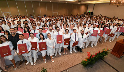 Por su parte, el secretario de Salud, Alejandro Antonio Calderón Alipi, destacó que los graduados no solo reciben un título, sino que asumen un compromiso permanente con la vida, al señalar que la medicina es una vocación que se ejerce todos los días y no tiene fecha de vencimiento. En este contexto, reconoció el respaldo de las familias como un pilar fundamental en la formación de los especialistas médicos en Tabasco.