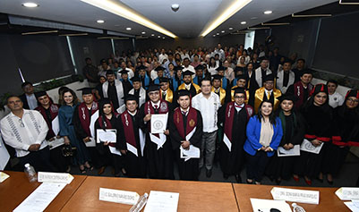 La calidad de los programas de maestría y doctorado incorporados al Sistema Nacional de Posgrados garantiza planes de estudio con altos estándares en investigación, productividad científica y formación de recursos humanos especializados, afirmó el rector de la UJAT, Guillermo Narváez Osorio, durante la ceremonia de graduación de la División Académica de Ingeniería y Arquitectura (DAIA).
