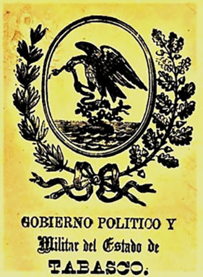 Escudo de Tabasco del gobierno de Gregorio Méndez Magaña. Archivo digital de Héctor Valencia Reyes.