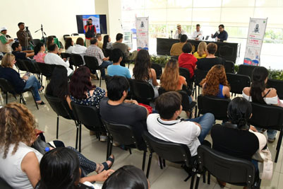 El encuentro que se realizó en el Foro FIL CIVE, contó con la presencia del rector de la UJAT, Guillermo Narváez Osorio y con la participación de los escritores Waldo Leyva y Harold Alva, quienes dialogaron con el autor sobre los alcances de su propuesta poética.