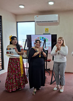 Como parte del programa cultural, se llevó a cabo una declamación poética a cargo de Dalia Vázquez, que dio paso al recorrido y explicación por parte de Angie Bu, quien compartió que su trabajo se caracteriza por una fusión de estilos como el realismo, el paisajismo y la abstracción, mediante los cuales busca representar la identidad, las emociones y las raíces culturales del sureste mexicano.