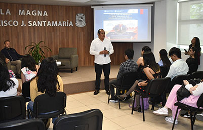 En el Aula Magna “Lic. Francisco J. Santamaría”, el director de la DACSyH, Ulises Chávez Vélez, realizó la clausura de este espacio formativo que, del 18 de febrero al 15 de abril, fortaleció en los estudiantes habilidades de expresión oral, sensibilidad literaria y desarrollo humanístico.