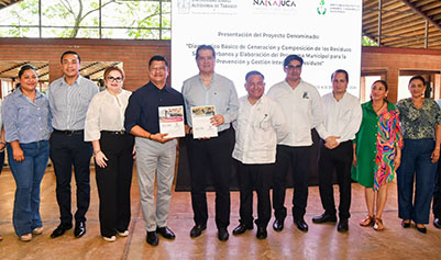 Nacajuca se convertirá en un referente en la gestión integral de residuos sólidos, no sólo en Tabasco, sino también en la región sureste y a nivel nacional, afirmó el rector de la Universidad Juárez Autónoma de Tabasco (UJAT), Guillermo Narváez Osorio, al entregar al presidente municipal, Roberto Ocaña Leyva el “Diagnostico Básico de la Generación y Composición de Residuos Sólidos Urbanos”, desarrollado por esta casa de estudios.