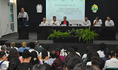 Ante la presidenta del Voluntariado UJAT, Aura Estela Noverola Alcocer y del delegado estatal de la Olimpiada de Química, Luis Fernando Roa de la Fuente, el rector reconoció la participación de los jóvenes provenientes de diversos municipios, así como el esfuerzo de instituciones y organizadores.