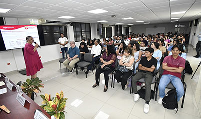 En su intervención, la funcionaria municipal compartió con los asistentes el programa “Emprendedores al Centro”, una estrategia impulsada por el Ayuntamiento de Centro orientada a la formación integral de emprendedores. Explicó que este modelo busca no solo capacitar, sino desarrollar habilidades blandas y técnicas que permitan a los participantes consolidar ideas de negocio, generar autoempleo y contribuir a la creación de nuevos espacios laborales.