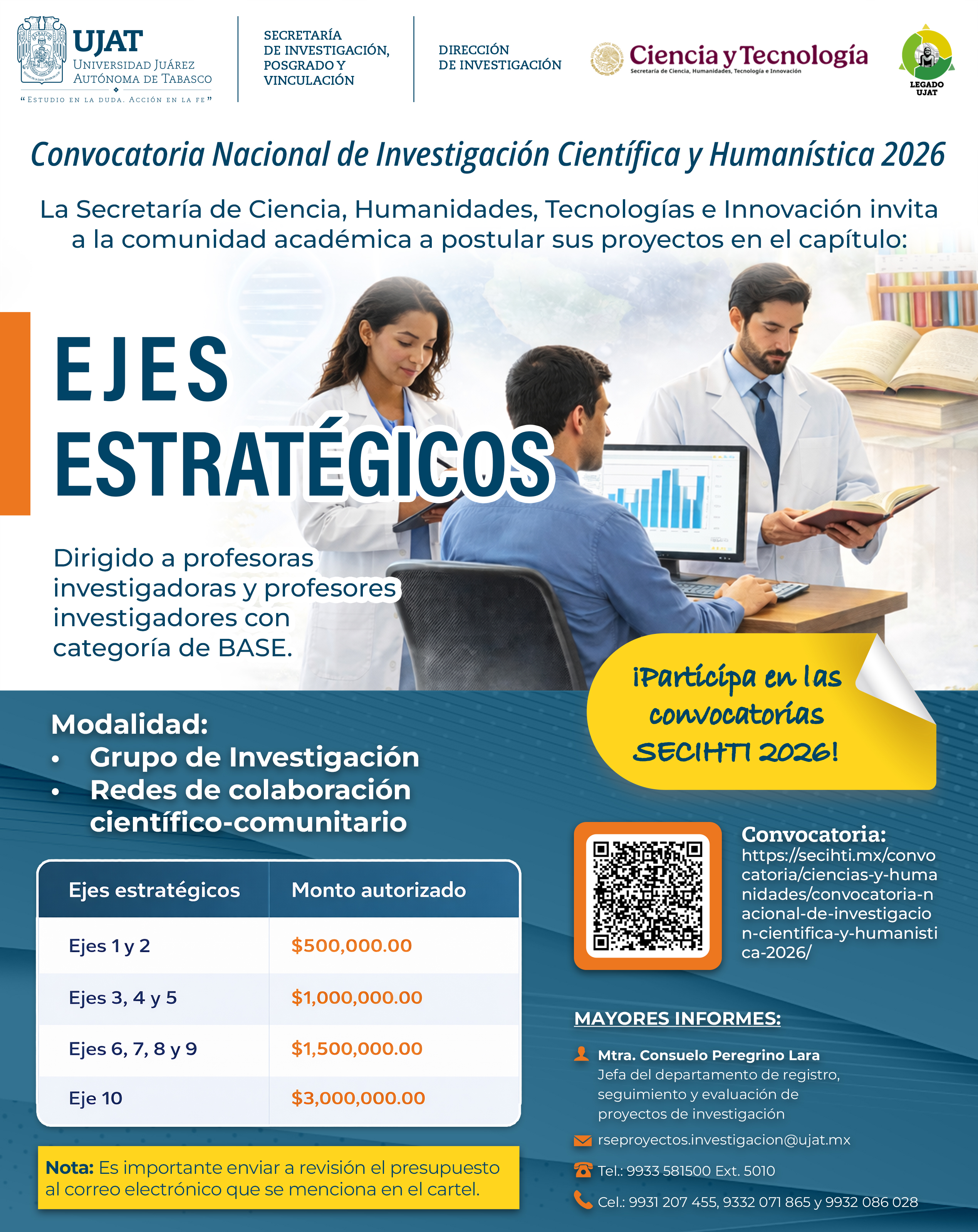 • Convocatorias nacionales 2026 abiertas para financiamiento de Propuestas de investigación