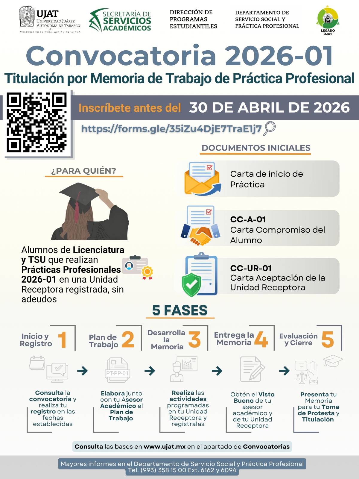 Convocatoria Opción a Titulación por Memoria de Trabajo de Práctica Profesional